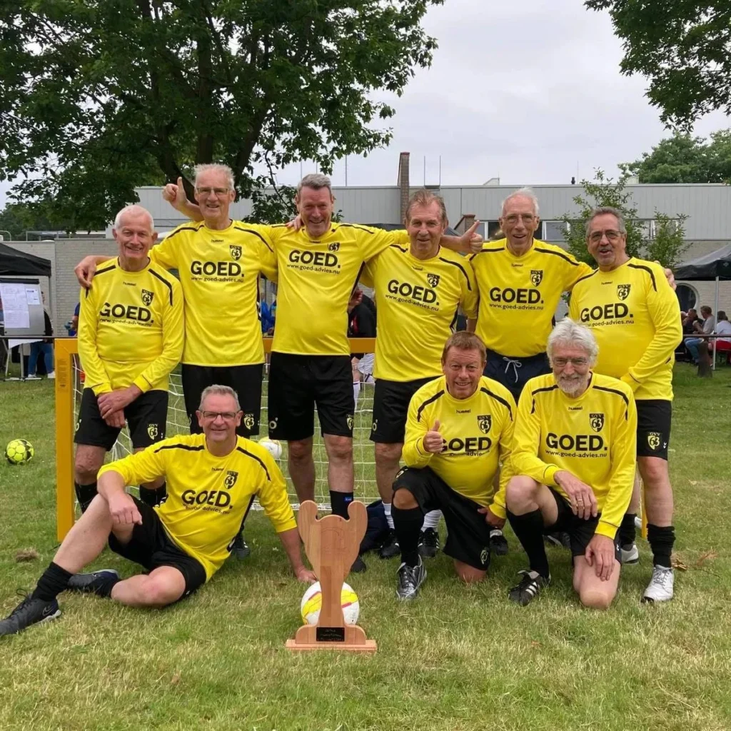 Teaminformatie Trainingstijden Elke dinsdagochtend wordt er Walking Football gespeeld op het complex van GVV’63. Aanvang 10.00 uur. Training dinsdagochtend van 10.30 – 11.30 Doelgroep 60+ Een mooie mogelijkheid om lichaamsbeweging met gezelligheid te combineren! Zin om mee te spelen? Kom een keer langs! Teamsponsoren